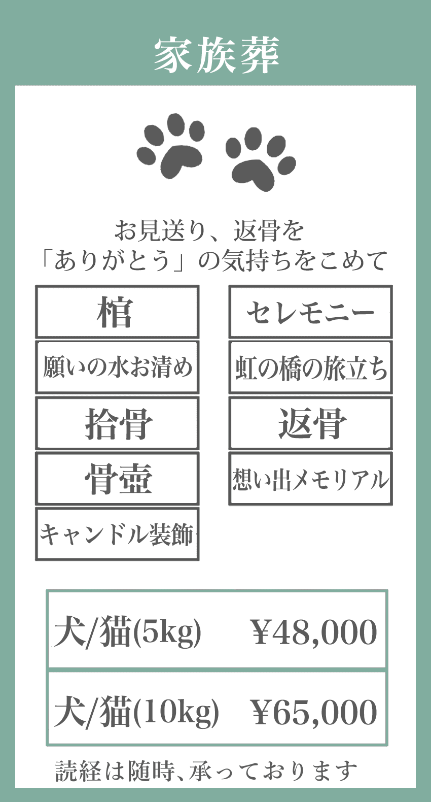 | 動物供養堂・合祀(読経込み) | 11,000円〜 |