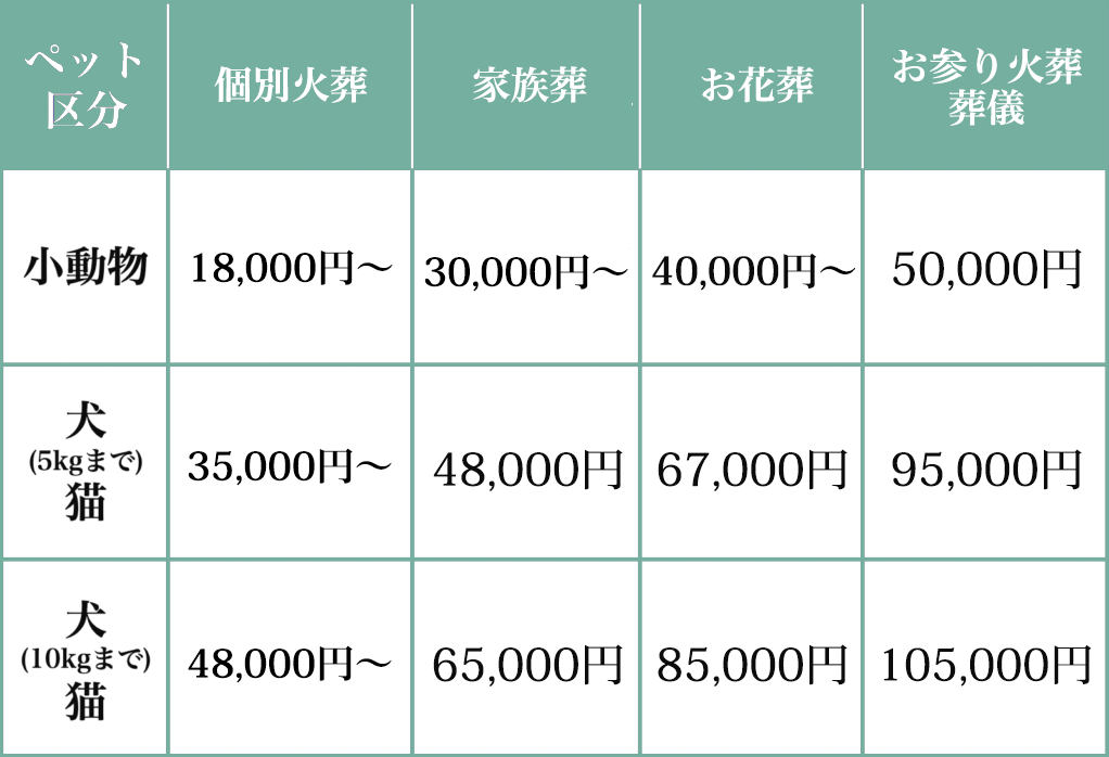 | 動物供養堂・合祀(読経込み) | 11,000円〜 |